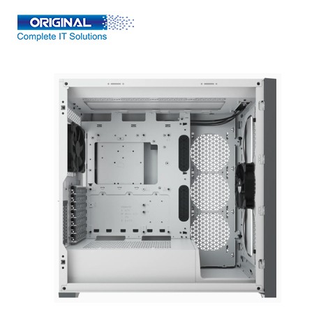 Corsair 5000D Airflow Tempered Glass Mid-Tower ATX Casing supported ATX, MicroATX, ITX, Mini ITX, and E-ATX Motherboard. This Casing Model is 5000D Airflow and the brand is Corsair. The Corsair 5000D Airflow ATX Casing Type is Mid-Tower Smart Case. This Casing Color is White. The Corsair Obsidian Series 500D Casing supports ATX Power Supply. This Casing is made of Tempered Glass, Steel, Aluminum, and Plastic materials. It has Expansion Stots 7 vertical + 2 horizontal, Drive Bays: 3.5in (x2), 2.5in (x4), Drive Bays 3.5": 2, Drive Bays 2.5": 4. Fan supported Front: 1 x 120mm, 2 x 140mm fan, Top: 3 x 120mm, 2 x 140mm fan, Motherboard tray fans: 3 x 120mm fan. Its Connectivity (1x) USB 3.1 Type C, (2x) USB 3.0, (1x) Audio in/out, Radiator Support 120mm, 140mm, 240mm, 280mm, 360mm, Maximum GPU Length: 400, Maximum PSU Length: 250, Maximum CPU Cooler Height: 170. The Casing Size is a Height of 520mm, Width of 245mm, Length of 520mm and Weight is 13.84 kg. The Corsair 5000D Airflow Mid-Tower Casing has no warranty.