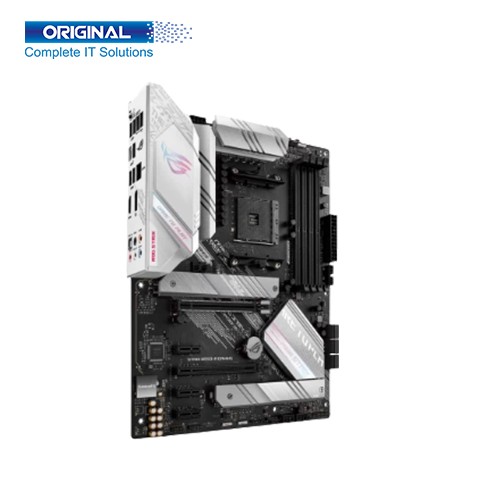ASUS ROG Strix B550-A Gaming AM4 ATX Motherboard. The Motherboard Model is ROG Strix B550-A Gaming. The Brand Asus. Supported Processor AMD AM4 Socket for AMD Ryzen™ 5000 Series/ 4000 G-Series/ 3000 Series Desktop Processors. Chipset AMD B550. Socket AM4. 256 Mb Flash ROM, UEFI AMI BIOS. ATX Form Factor: 12 inches x 9.6 inches ( 30.5 cm x 24.4 cm ). Memory Types DDR4, Dual Channel, 4 x DIMM. Maximum Memory 128 GB. 1 x HDMI 2.1(4K@60HZ). 1 x DisplayPort 1.2. Graphics specifications may vary between CPU types. Integrated Graphics Processor. Front USB Port ( Total 6 ), Rear USB Port ( Total 8 ), 4 x USB 3.2 Gen 1 port(s)(4 x Type-A), 2 x USB 3.2 Gen 2 port(s)(1 x Type-A +1 x USB Type-C®), 2 x USB 3.2 Gen 1 port(s), 2 x USB 2.0 port(s), 4 x USB 2.0 port(s). Intel® I225-V 2.5Gb Ethernet. ASUS LAN Guard. 1 x Intel® I225-V 2.5Gb Ethernet. 1 x HDMI. 1 x DisplayPort. 5 x Gold-plated audio jacks. 1 x BIOS FlashBack™ Button(s). 1 x Optical S/PDIF out. Supported Operating System Windows 10 64-bit. ASUS ROG Strix B550-A Gaming AM4 ATX Motherboard comes with 03 years warranty.