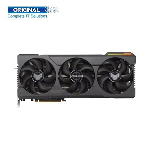 ASUS TUF GAMING GeForce RTX 4090 OC EDITION 24GB Graphics Card. The Graphics Card Model is TUF Gaming GeForce RTX 4090 OC Edition 24GB. The Brand ASUS has CUDA Cores of 16384, Video Memory of 24GB GDDR6X, a Memory Bus of 384-bit, an Engine Clock OC mode: of 2595 MHz, a Default mode: of 2565 MHz (Boost Clock), a Memory Clock of 21 Gbps, PCI Express 4.0, OpenGL®4.6. AURA SYNC ARGB. It has Display Outputs Yes x 2 (Native HDMI 2.1a). Yes x 3 (Native DisplayPort 1.4a), HDCP Support Yes (2.3), Multi-Display Capability 4. Digital Maximum Resolution 7680 x 4320. Recommended Power Supply 850W, Power Connectors 1 x 16-pin, 3.65 slots. Dimensions ( W x D x H ) 348.2 x 150 x 72.6 mm. Supported Operating System Windows 10, 11. The ASUS TUF GAMING GeForce RTX 4090 OC EDITION 24GB Graphics Card comes with 03 years warranty.