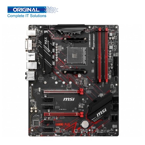 MSI B450 Gaming Plus Max AMD AM4 Socket DDR4 Motherboard comes with AMD Ryzen 1st, 2nd, and 3rd Gen with Radeon Vega Graphics Processors, AMD B450 Chipset, 30.5 cm x 24.4 cm ATX Form Factor and LGA1200 socket. MSI B450 Gaming Plus DDR4 Motherboard Maximum 128 GB DDR4 Dual Channel Memory, 4 x DDR4 DIMM sockets, Supported Bus Speed DDR4 1866/ 2133/ 2400/ 2667 MHz.MSI B450 Gaming Plus Max Motherboard comes with standard Graphics such as a 1 x DVI-D port, supports a maximum resolution of 1920x1200 @60Hzz1, 1 x HDMI 1.4 port, supports a maximum resolution of 4096x2160 @30Hz, 2560x1600 @60Hz1, Maximum shared memory of 2048 MB. B450 Gaming Plus Max MSI Motherboard Expansion PCI Slots is 1 x PCIe 3.0 x 16 slots, 4 x SATA 6 GB/s, 1 x M.2 slots, Supports RAID 0, RAID1, and RAID 10 for SATA storage devices also various Internal Connectors such as 1 x 24-pin ATX main power connector, 1 x 4 pin CPU fan header, 1 x front panel audio connector, etc. The MSI B450 Gaming Plus Max Motherboard has 1 x RealtekÂŽ RTL8111H Gigabit LAN controller, USB 3.2 Gen 1, USB 2.0 ports, 7.1-Channel High Definition Audio, etc many others. The MSI B450 Gaming Plus Max AMD AM4 Socket DDR4 Motherboard Support for Windows 10 64-bit, 7 64-bit. You can enjoy a 03 Years Warranty and buy Motherboard from Original Store Ltd and get online delivery at any corner of Bangladesh.