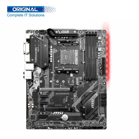 MSI B450 TOMAHAWK MAX AMD AM4 Socket DDR4 ATX Motherboard comes with 1st, 2nd, and 3rd Gen AMD Ryzen/ Ryzen with Radeon Vega Graphics and 2nd Gen AMD Ryzen with Radeon Graphics/ Athlon with Radeon Vega Graphics Desktop Processors for Socket AM4, AMD B450 Chipset with 30.5 cm x 24.4 cm ATX Form Factor and AM4 socket. MSI B450 TOMAHAWK MAX AMD Motherboard Maximum 64 GB DDR4 Dual Channel Memory, 4 x DDR4 DIMM sockets, Supported Bus Speed Supports 1866/ 2133/ 2400/ 2667Mhz (by JEDEC), For AMD Ryzen Gen3 (R5/R7/R9), Supports 2667/ 2800/ 2933/ 3000/ 3066/ 3200/ 3466/ 4000/ 4133 MHz (by A-XMP OC MODE), Supports 2667/ 2800/ 2933/ 3000/ 3066/ 3200/ 3466 MHz (by A-XMP OC MODE). MSI B450 TOMAHAWK ATX Motherboard comes with standard Graphics such as 1 x DVI-D port, supports a maximum resolution of 1920x1200@60Hz, 1 x HDMI 2.0b with HDR port, supports a maximum resolution of 4K @60Hz. B450 TOMAHAWK MAX MSI Motherboard Expansion PCI Slots is 1 x PCIe 3.0 x 16 slots, Supports x16 speed, 1st, 2nd, and 3rd Gen AMD Ryzen, 2 x SATA 6 GB/s, 4 x SATA 6 GB/s, connectors, 1x M.2 slot, Supports RAID 0, RAID1 and RAID 10 for SATA storage devices also various Internal Connectors such as 1 x 24-pin ATX main power connector, 1 x 4 pin CPU fan header, 1 x front panel audio connector, etc. The MSI B450 TOMAHAWK MAX Motherboard has a 1 x Realtek 8111H Gigabit LAN controller, 2 x USB 3.2 Gen2, 2 x USB 3.2 Gen1, 6 x USB 2.0 ports, etc many others. The MSI B450 TOMAHAWK MAX Motherboard Support for Windows 10 64-bit. You can enjoy 03 Years Warranty and buy this Motherboard from Original Store Ltd and get online delivery at any corner of Bangladesh.