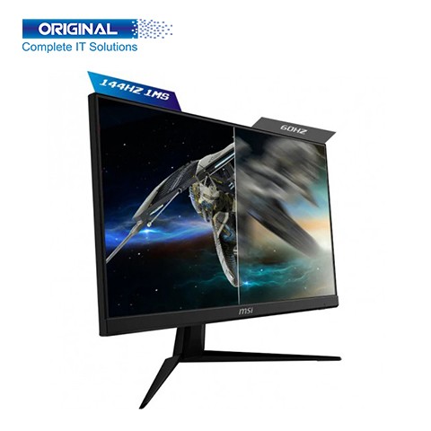MSI Optix G241 23.8 Inch FreeSync FHD Gaming Monitor. The Display Panel is IPS Technology, and the Display Size is 23.8 Inches. This Monitor Resolution is 1920 x 1080 (Full HD), Brightness is 250 nits, Aspect Ratio is 16:9, and Contrast Ratio is 1000:1. Its Response Time is 1ms, Refresh Rate 144 Hz, and Viewing Angle is 178º horizontal, and 178º vertical. Its Color Support is 16.7M. It has a 1x Display Port(1.2), 2x HDMI(1.4b), and Audio Jack 1x Earphone out. The power requirement is AC 100-240V ~ 50/60Hz and Power Consumption is 25W. Its Dimensions are 540.3 x 422.6 x 219.6 mm, 21.27 x 16.64 x 8.65 inches and its Weight is 3.3kg, 5.0kg. Finally, it comes with a 03 Years Warranty.