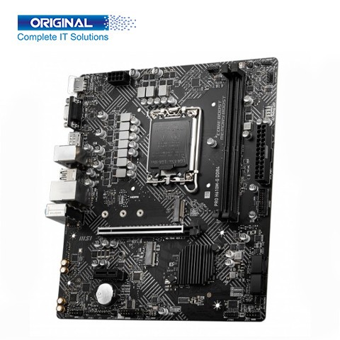 MSI PRO H610M-G 12th Gen DDR4 Mirco ATX Motherboard with Supported Processor Supports Intel Core 12th Gen Pentium Gold and Celeron GA1700 Socket Processors. This is MSI PRO H610M-G 12th Gen Motherboard Chipset Intel H610 Chipset, Socket LGA1700, Form Factor * mATX Form Factor, * 9.29 x 7.95 in. (23.6 cm x 20.2 cm). This is Memory Types DDR4, Channel Dual-Channel, Slot 2x DDR4 memory slots, Supported Bus Speed Supports 1R 2133/ 2666/ 2933/ 3200 MHz (by JEDEC & POR), Maximum Memory 64GB, Graphics * 1x HDMI 2.1 with HDR port, supports a maximum resolution of 4K 60Hz 1 2, * 1x VGA port, supports a maximum resolution of 2048x1536 50Hz, 2048x1280 60Hz, 1920x1200 60Hz1, * x DisplayPort 1.4 port, supports a maximum resolution of 4K 60Hz1 2, PCI * 1x PCIe x16 slot (From CPU), * Supports up to PCIe 4.0 x16, * 1x PCIe x1 slot, * Supports PCIe 3.0 x1, * 1x M.2 slot with E-key for PCIe WiFi module only (M2_ WIFI1), M.2 1x M.2 slot (Key M, from chipset), SATA * 4x SATA 6Gb/s ports, * Supports up to SATA 6Gb/s, Internal Connectors * POWER CONNECTORS:* 1x 24-pin ATX main power connector, * 1x 8-pin ATX 12V power connector, * FAN CONNECTORS:* 1x 4-pin CPU fan connector, * 1x 4-pin system fan connector, * SYSTEM CONNECTORS: 1x Front panel audio connector, * 2x System panel connectors, * 1x Chassis Intrusion connector, * 1x TPM module connector. It is Port Information PS/2 Port 1x Keyboard/Mouse Port, VGA Port 1x VGA Port, USB Port * USB 3.2 Gen 1 5Gbps Type-A, * USB 2.0, HDMI Port 1x HDMI Port, Display Port 1x Display Port, LAN Port 1x Intel I219V 1Gbps LAN controller Audio Port, * Realtek ALC892/ ALC897 Codec, * 7.1-Channel High Definition Audio, LED FEATURE * 1x 4-pin RGB LED connector, * 2x 3-pin RAINBOW LED connectors, * 4x EZ Debug LED, Supported OS for Windows 11 64-bit. The MSI PRO H610M-G 12th Gen DDR4 Mirco ATX Motherboard has a 3 Years Warranty.
