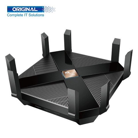 TP-Link Archer AX6000 6000 Mbps Dual Band Wi-Fi 6 Gigabit Router Model is Archer AX6000. The Router brand TP-Link is the best in the world. TP-Link Router Type Gigabit Dual Band Router. Its working modes are Router Mode and Access Point Mode. It gives wireless performance up to 6000 Mbps. It provides a high-speed Network Standard that is compatible with IEEE 802.11b,g,n, a,ac, ax, and Wi-Fi Frequency 2.4 GHz and 5 GHz. The router has 8 high-gain external antennas. The Router has also WPS Button, Reset Button, Power Button, Wireless on/off Button, LED on/off Button, 1 x WAN, 8 x LAN, 1 x USB3.0 USB-A, 1 x USB3.0 USB-C. This Router included a 1.8 GHz quad-core processor. MU-MIMO Technology 4×4 MU-MIMO Simultaneously communicates with multiple MU-MIMO clients. The Router Wi-Fi Encryption WPA, WPA2, WPA3. Network Security SPI Firewall, Access Control, IP & MAC Binding, Application Layer Gateway. This Router has a special 1× 5 GHz Guest Network and 1× 2.4 GHz Guest Network. Router Power Voltage 12 V ⎓ 4 A and Dimensions 10.3 × 10.3 × 2.4 in. (261.2 × 261.2 × 60.2 mm). TP-Link Archer AX6000 Router supports Windows® 7,8,10,Mac OS X 10.6,Mac OS X 10.7,Mac OS X 10.8 operating system. TP-Link Archer AX6000 6000Mbps Dual Band Wi-Fi 6 Gigabit Router has one year warranty.