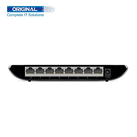 TP-Link TL-SG1008D Gigabit 8 Port Desktop Switch. Model TP-Link TL-SG1008D, and TP-Link brand. Gigabit 8 Port Type Desktop Switch, Port 8 Port, Network Standard IEEE 802.3i, 3u, 3ab, 3x. The interface is 8 10, 100/1000 RJ45 Ports, AUTO Negotiation/AUTO MDI/MDIX. TL-SG1008D Gigabit Power Supply External Power Adapter (Output 9VDC / 0.6A), Power Consumption 4.6W. TP-Link TL-SG1008D External Power Supply Adapter(Output 9VDC / 0.6A), Buffer Size 2Mbit, Max Power Consumption 4.6W, Max Heat Dissipation 15.8 BTU/h. TP-Link TL-SG1008D Gigabit 8 Port Dimensions (W×D×H) 7.1 × 3.5 × 1.0 inch (180 × 90 × 26 mm), Environment Operating Temperature 0℃~40℃, (32℉~104℉) Storage Temperature -40℃~60℃ (-40℉~140℉), Operating Humidity 10%~90% non-condensing, Storage Humidity 5%~90% non-condensing. TP-Link TL-SG1008D Gigabit 8 Port Desktop Switch 01 Years Warranty.