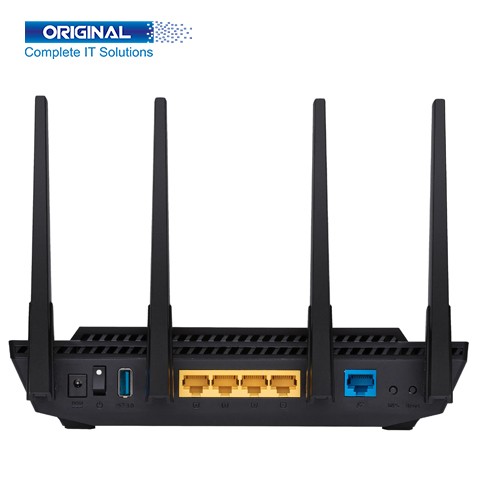 Asus RT-AX3000 3000Mbps Dual Band WiFi 6 Router Type Dual Band. Support Wi-Fi Speed 3000Mbps.Network Standard IEEE 802.11a, IEEE 802.11b, IEEE 802.11g, IEEE 802.11n, IEEE 802.11ac, IEEE 802.11ax, IPv4, IPv6.Wi-Fi Frequency 2.4 GHz / 5 GHz. Antenna External antenna x 4. Button WPS Button, Reset Button, Power Switch. Ports RJ45 for Gigabits BaseT for WAN x 1, RJ45 for Gigabits BaseT for LAN x 4 USB 3.1 Gen 1 x 1. Asus RT-AX3000 WiFi 6 Router Processor 1.5 GHz tri-core processor. Memory 256 MB Flash 512 MB RAM.MU-MIMO Yesrted OS Windows 7,8,10,c OS X 10.6, Mac OS X 10.7, Mac OS X 10.8.Wi-Fi Encryption WPA3-Personal,WPA2-Personal,WPA-Personal,WPA-Enterprise,WPA2-Enterprise ,WPS support. Network Security Parental control, Network service filter, URL filter, Port filter. Guest Network VPN server: PPTP Server, IPSec server. The Power AC Input : 110V~240V(50~60Hz),DC Output : 19 V with max. 1.75 A current, DC Output: 12 V with max. 2 A current. Dimensions 224 x 154 x 160 mm (LxWxH) with antenna,224 x 154 x 50 mm (LxWxH) without antenna and Weight 538 g. Asus RT-AX3000 3000Mbps Dual Band WiFi 6 Router Warranty 2 Years.