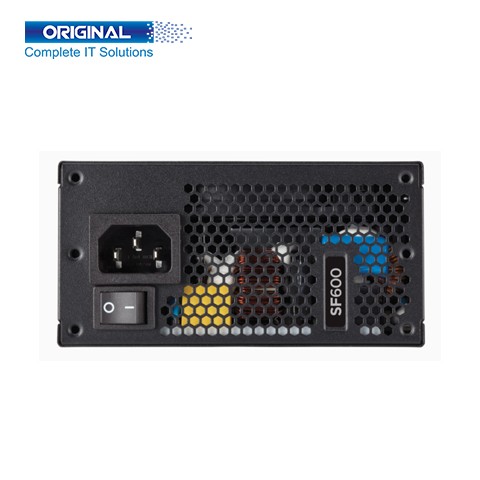 Corsair SF600 600W 80 Plus Platinum Certified Power Supply. The model is Corsair SF600 600W. The brand is Corsair. This Power Supply Capacity is 600W. Its Color is Black. It has no RGB Fan. Corsair SF600 600W Power Supply supports Intel Form Factor ATX 12V 2.4. Corsair SF600 600W 80 Plus Power Supply gives Power Good Signal 600 Watts, MTBF 100,000 hours, Cooling Fan System Fan size mm 92mm, Protections OVP/OPP/SCP/UVP/OCP/OTP. Its ATX 1, PCIe 2, SATA 4, Floppy 0. The Power Supply Dimensions is 10mm x 12.5mm x 6.35mm and Weight 86kg. The Corsair SF600 600W 80 Plus Platinum Certified Power Supply has five years warranty.