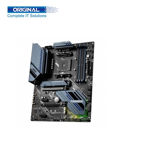 MSI MAG X570S TORPEDO MAX AMD AM4 ATX Motherboard Brand MSI, Supported Processor Supports AMD Ryzen 5000 Series, 5000 G-Series, 4000 G-Series, 3000 Series, 3000 G-Series, 2000 Series, and 2000 G-Series desktop processors, Chipset AMD X570 Chipset, Socket AM4, Form Factor ATX Form Factor; 12 in. x 9.6 in. (30.5 cm x 24.4 cm), Memory Type DDR4, Channel Dual Channel, Slot 4 x DDR4 memory slots, Supported Bus Speed Supports 1866/ 2133/ 2400/ 2667/ 2800/ 2933/ 3000/ 3066/ 3200 MHz by JEDEC1, Max overclocking frequency by A-XMP OC mode: For Ryzen 5000 G-Series & 4000 G-Series processors 1DPC 1R Max speed up to 5100 MHz,1DPC 2R Max speed up to 4000 MHz,2DPC 1R Max speed up to 4266 MHz,2DPC 2R Max speed up to 3600 MHz, For Ryzen 5000 Series & 3000 Series processors,1DPC 1R Max speed up to 5100 MHz,1DPC 2R Max speed up to 3866 MHz,2DPC 1R Max speed up to 4000 MHz,2DPC 2R Max speed up to 3600 MHz, Maximum Memory Up to 128GB. The MSI MAG X570S TORPEDO MAX ATX Motherboard Graphics 1x HDMI 2.1 port, supports a maximum resolution of 4K 60Hz,PCI Supports PCIe 4.0 / PCIe 3.0 specification, PCIe 4.0 is available only on AMD Ryzen 5000 Series and 3000 Series desktop processors,1x PCIe x16 slot (From processor),PCI_E1 supports PCIe 4.0/ 3.0 x16,1x PCIe x16 slot (From X570 chipset),PCI_E3 supports PCIe 4.0/ 3.0 x4,2x PCIe 3.0 x1 slots (From X570 chipset),Supports AMD CrossFire Technology,M.2 2x M.2 slots (Key M),SATA 6x SATA 6Gb/s ports (from AMD X570 Chipset),Internal Connectors 1x 24-pin ATX main power connector,1x 8-pin ATX 12V power connector,1x 4-pin ATX 12V power connector,6x SATA 6Gb/s connectors,2x USB 2.0 connectors (supports additional 4 USB 2.0 ports),2x USB 3.2 Gen 1 5Gbps connectors (supports additional 4 USB 3.2 Gen 1 5Gbps ports),1x USB 3.2 Gen 2 10Gbps Type-C port,1x 4-pin CPU fan connector,1x 4-pin water-pump connector,4x 4-pin system fan connectors,1x Front panel audio connector,2x System panel connectors,1x Chassis Intrusion connector,1x TPM module connector,1x Serial port connector,1x Chassis Intrusion connector, USB Port AMD X570 Chipset,3x USB 3.2 Gen 2 10Gbps ports (2 Type-A ports on the back panel, 1 Type-C internal connector),4x USB 3.2 Gen 1 5Gbps ports available through the internal USB 3.2 Gen 1 5Gbps connectors,6x USB 2.0 ports (2 Type-A ports on the back panel, 4 ports available through the internal USB 2.0 connectors),AMD Processor,2x USB 3.2 Gen 2 10Gbps ports on the back panel (Type-A & Type-C),2x USB 3.2 Gen 1 5Gbps Type-A ports on the back panel, HDMI Port 1 x HDMI 2.1,LAN Port 1x Realtek 8125B 2.5Gbps LAN Controller Audio Port Realtek ALC4080 Codec,7.1-Channel High Definition Audio, Supports S/PDIF output, Wireless Lan & Bluetooth Intel® Wi-Fi 6E AX210.The Wireless module is pre-installed in the M.2 (Key-E) slot, Supports MU-MIMO TX/RX, 2.4GHz/ 5GHz/ 6GHz (160MHz) up to 2.4Gbps, Supports 802.11 a/ b/ g/ n/ ac/ ax, Supports Bluetooth 5.2, FIPS, FISMA, Supported OS Support for Windows® 10 64-bit. The MSI MAG X570S TORPEDO MAX AMD AM4 ATX Motherboard 3 Years Warranty.